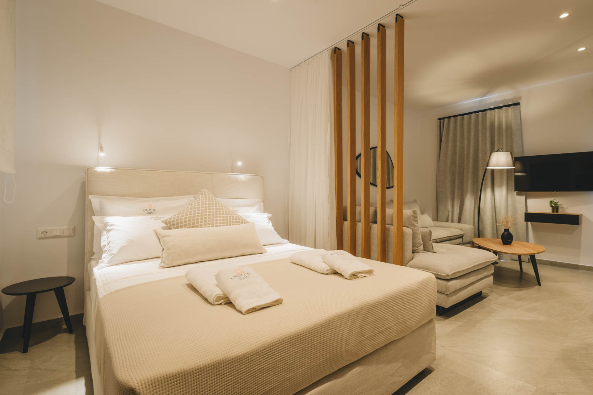 Capital Suites, a fresh addition to the enchanting island of Skopelos, invites you to experience authentic island hospitality in an atmosphere where elegance meets natural beauty. Each suite has been thoughtfully designed to provide the highest level of comfort and tranquility.