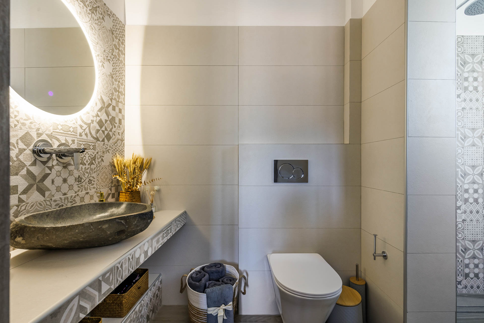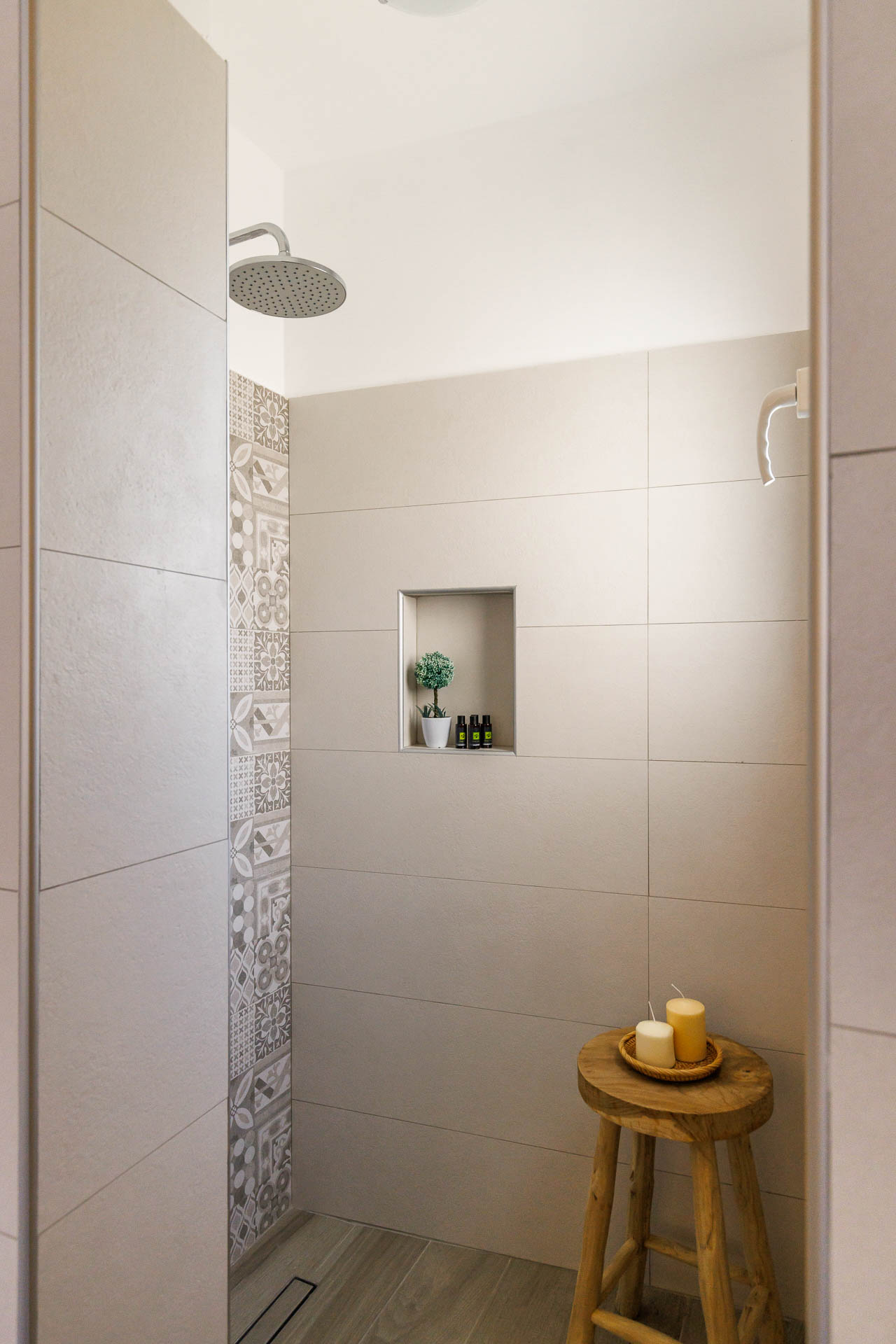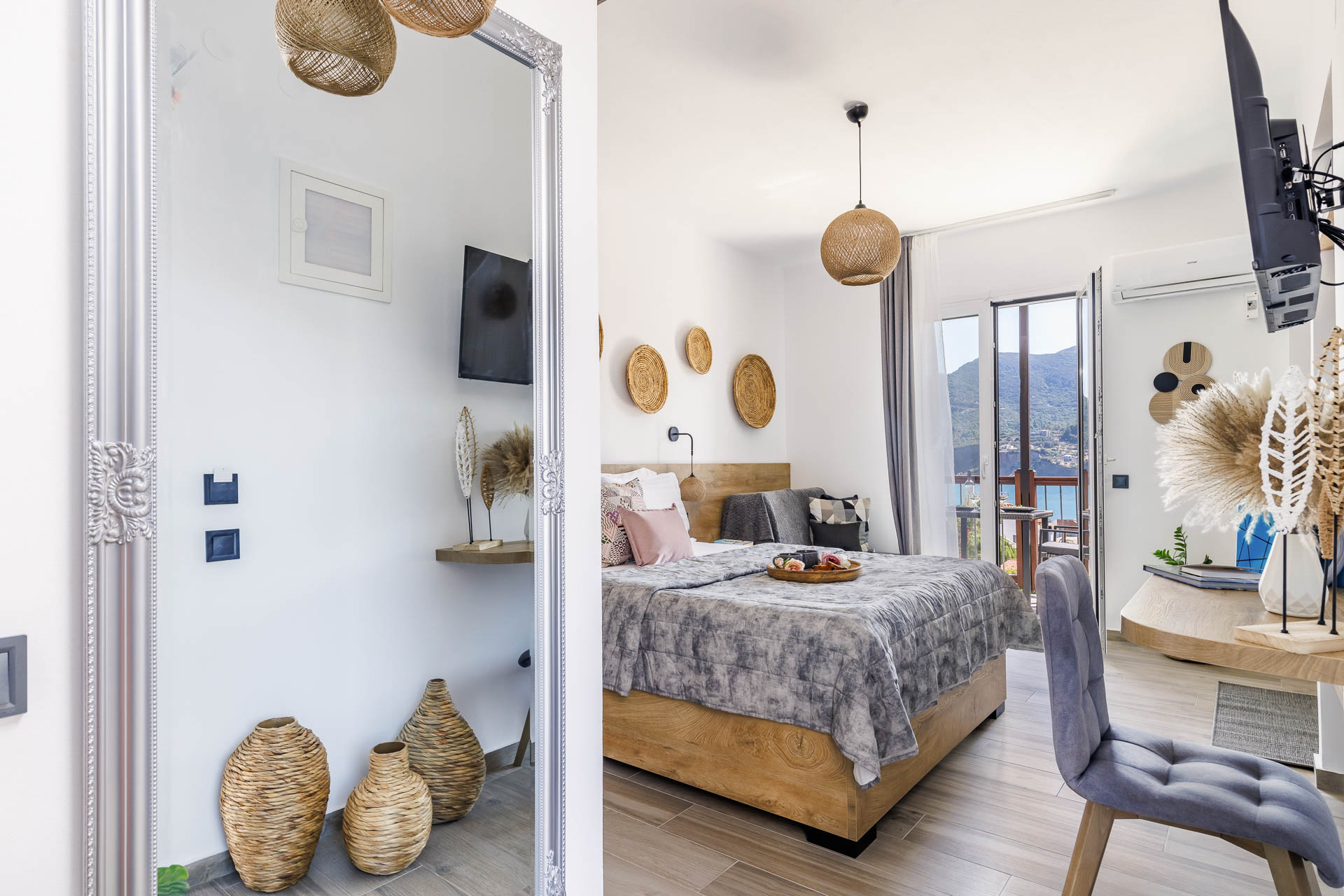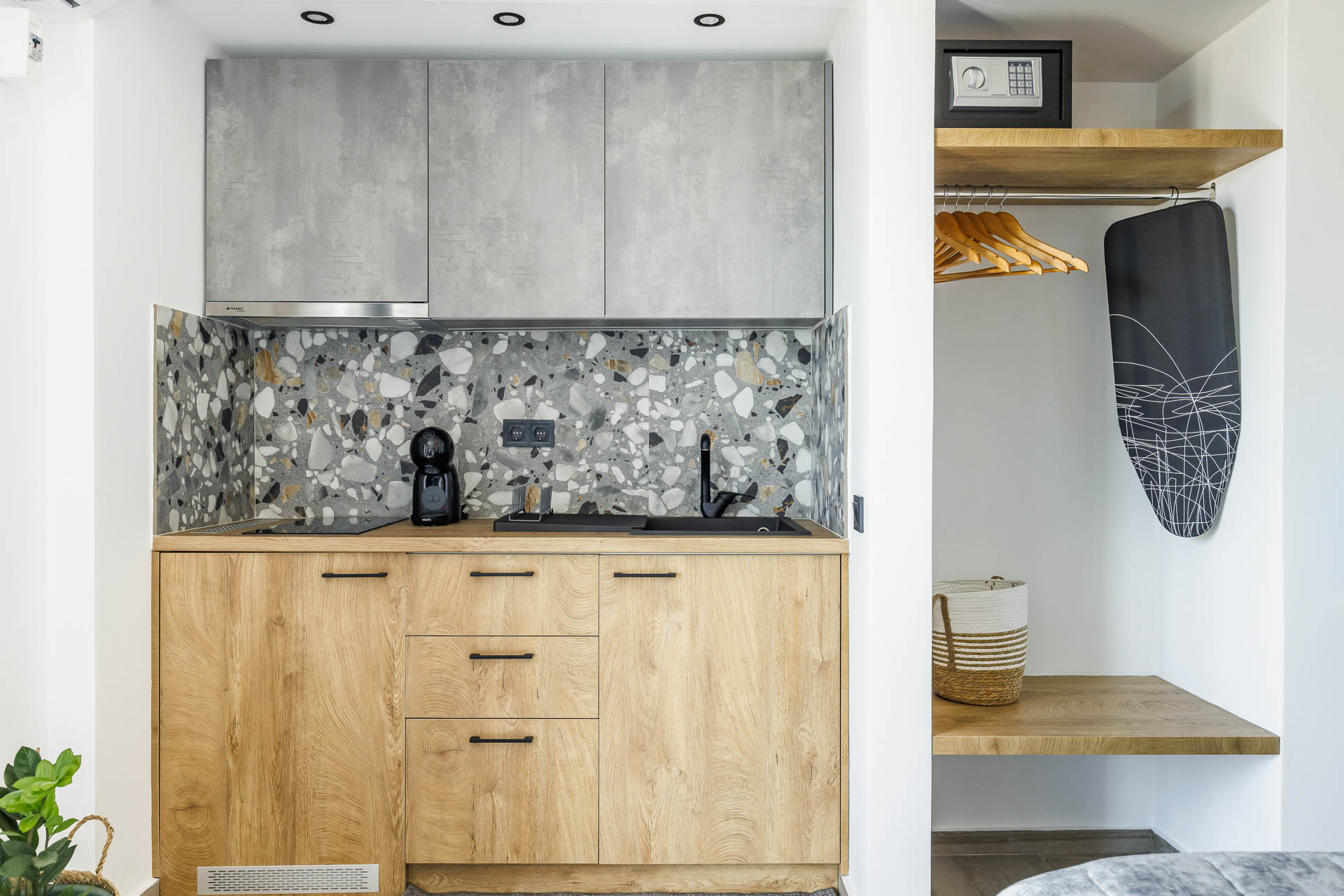 The studio is designed with a clean aesthetic creating a bright and comfortable living space. From its position above the town, guests can enjoy views of the port, the surrounding houses, and the changing colors of the landscape from morning to evening. The location provides easy access to the center of Skopelos Town, while maintaining a more relaxed and quiet atmosphere away from the busy areas.